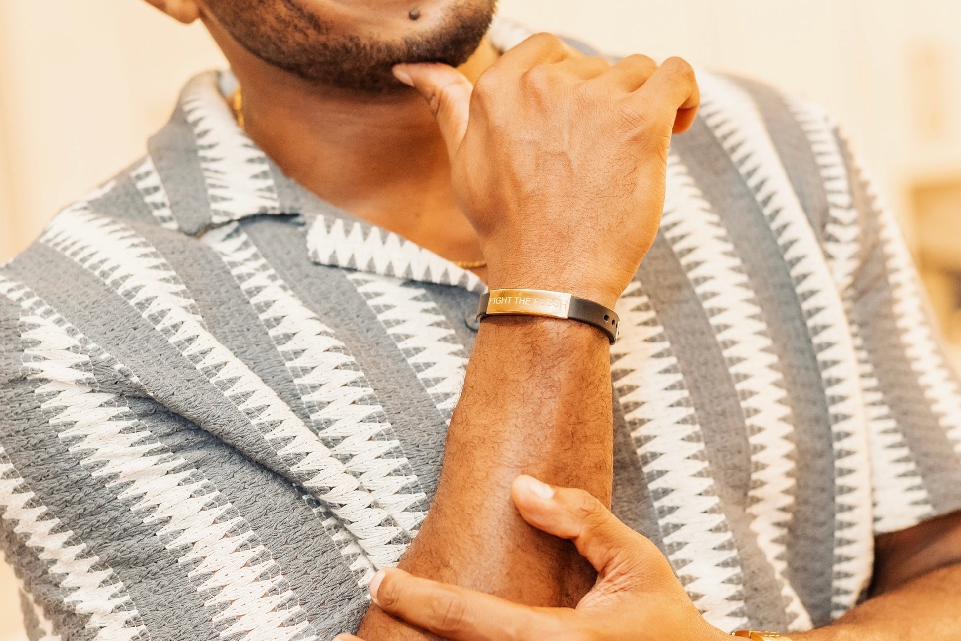 I love the bracelet! Whoever thought of it is a genius. I wish the silver buckle was gold like Fight The Flesh piece, but its not a big deal. This bracelet is a physical reminder that we are fighting a spiritual war against our flesh and to deny ourselves and follow Jesus Chrust. Thank you so much!